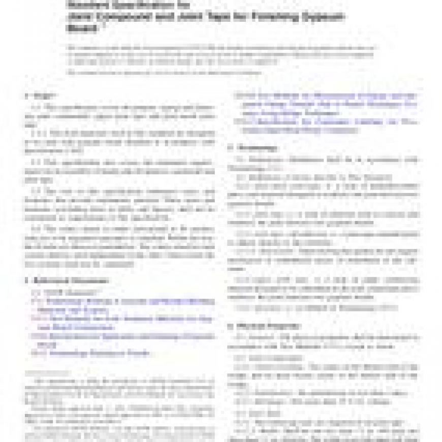 1.2 This specification also covers the minimum requirements for an assembly of taping and all-purpose compound and joint tape.