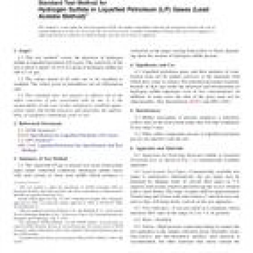 This test method covers the detection of hydrogen sulfide in liquefied petroleum (LP) gases. The sensitivity of the test is about 4 mg/m (0.15 to 0.2 grain of hydrogen sulfide per 100 ft) of gas.