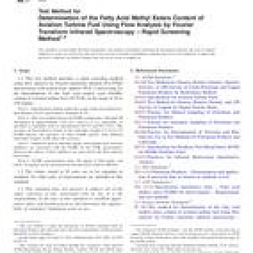 ASTM D7797-12 Test Method for Determination of the Fatty Acid Methyl Esters Content of Aviation Turbine Fuel Using Flow Analysis by Fourier Transform Infrared Spectroscopy – Rapid Screening Method