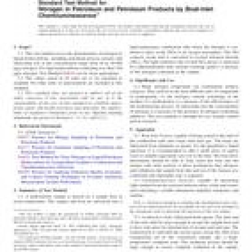 ASTM D5762-12 Standard Test Method for Nitrogen in Petroleum and Petroleum Products by Boat-Inlet Chemiluminescence