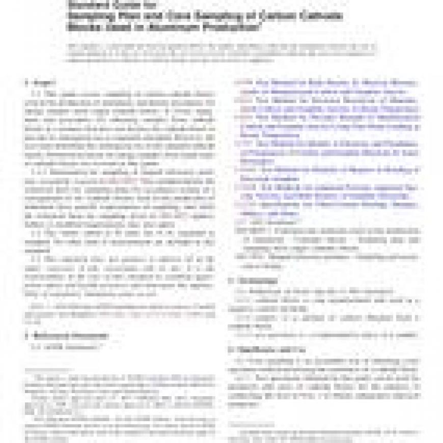 ASTM D6354-12 Standard Guide for Sampling Plan and Core Sampling of Carbon Cathode Blocks Used in Aluminum Production