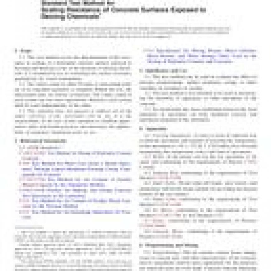 ASTM C672/C672M-12 Standard Test Method for Scaling Resistance of Concrete Surfaces Exposed to Deicing Chemicals