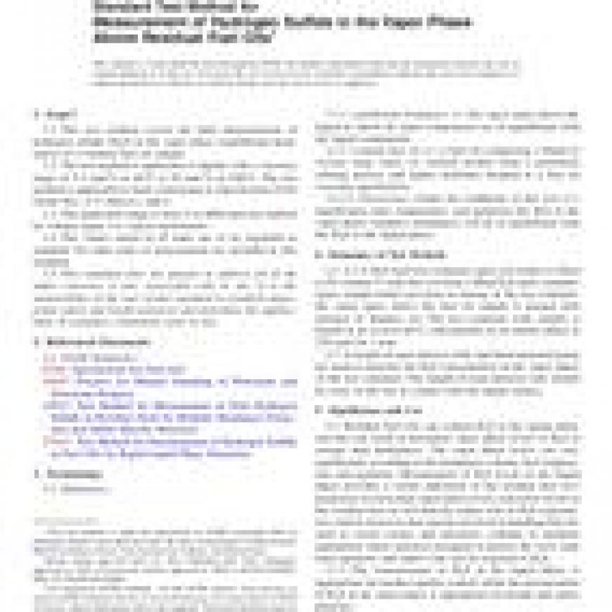 ASTM D5705-12 Standard Test Method for Measurement of Hydrogen Sulfide in the Vapor Phase Above Residual Fuel Oils