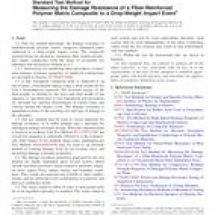 ASTM D7136/D7136M-12 Standard Test Method for Measuring the Damage Resistance of a Fiber-Reinforced Polymer Matrix Composite to a Drop-Weight Impact Event