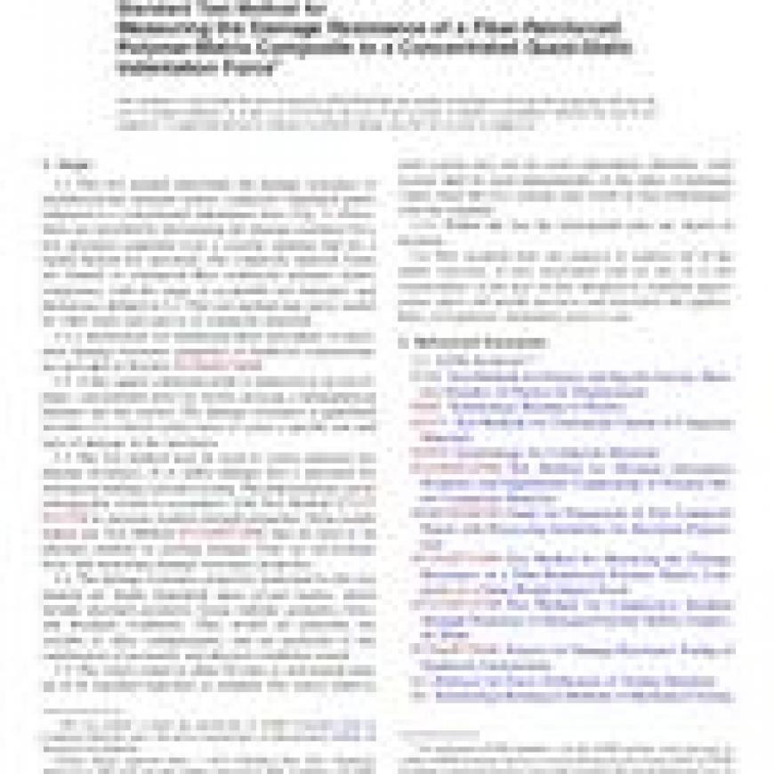 ASTM D6264/D6264M-12 Standard Test Method for Measuring the Damage Resistance of a Fiber-Reinforced Polymer-Matrix Composite to a Concentrated Quasi-Static Indentation Force