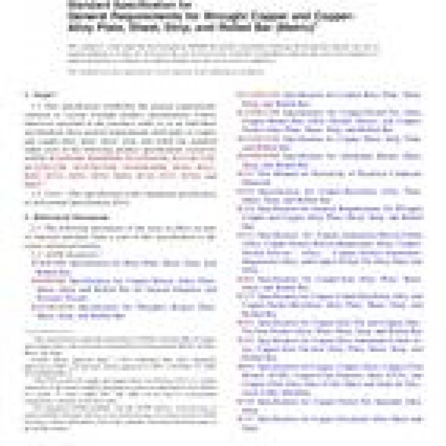 1.1 This specification establishes the general requirements common to several wrought product specifications. Unless otherwise specified in the purchase order or in an individual specification, these general requirements shall apply to copper and copper-alloy plate, sheet, strip, and rolled bar supplied under each of the following product specifications issued by ASTM: B36/B36M, B96/B96M, B103/B103M, B121/B121M, B122/B122M, B152/B152M, B169/B169M, B194, B422, B465, B534, B591, B592, B694, B740, B747, B768, and B888.