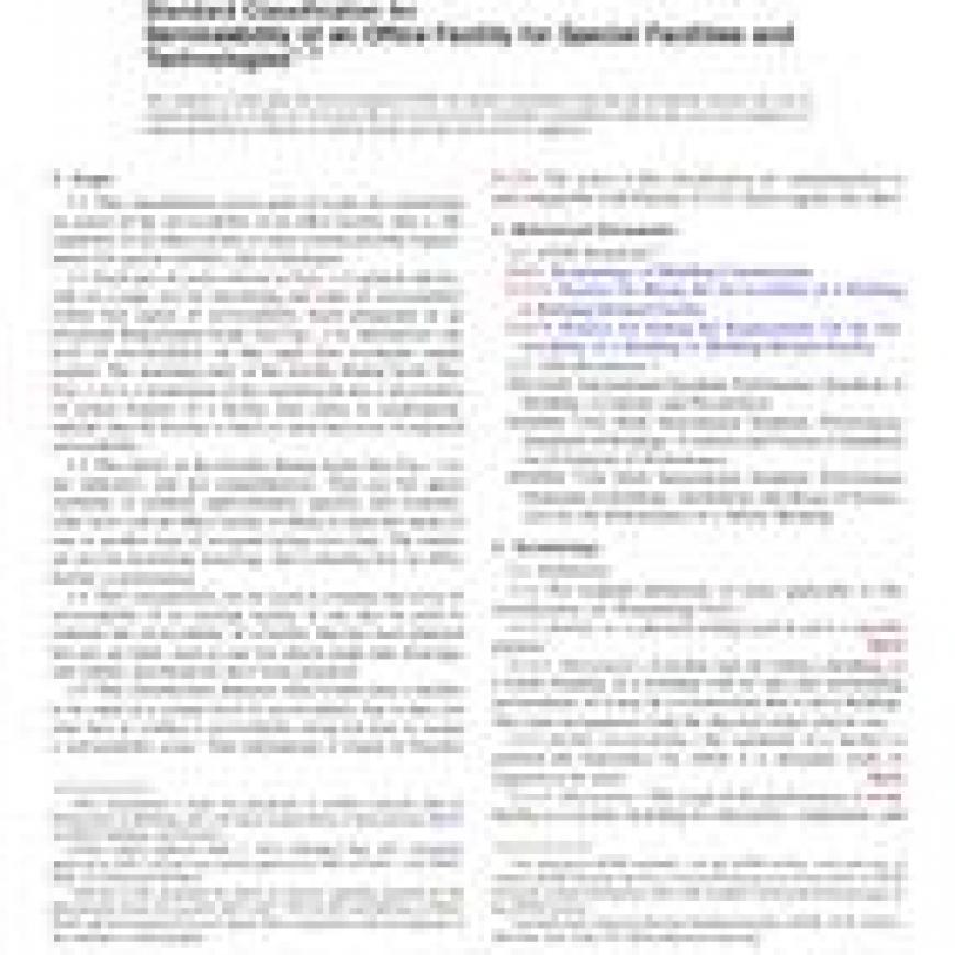 ASTM E1694-95a(2012) Standard Classification for Serviceability of an Office Facility for Special Facilities and Technologies