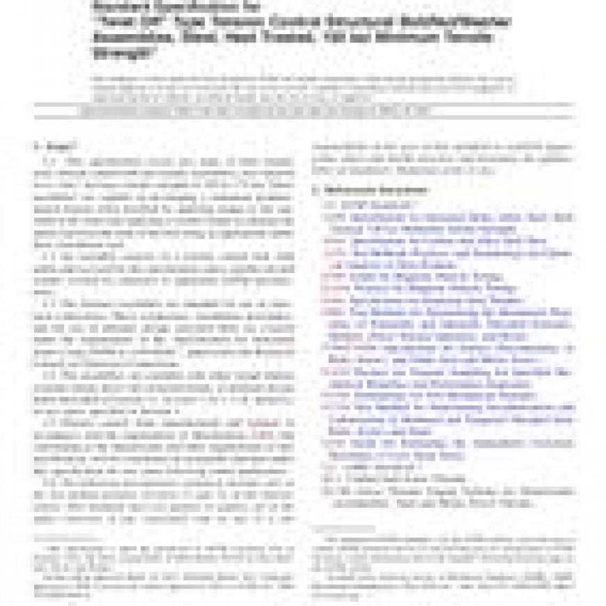 ASTM F2280-12 Standard Specification for “Twist Off” Type Tension Control Structural Bolt/Nut/Washer Assemblies, Steel, Heat Treated, 150 ksi Minimum Tensile Strength