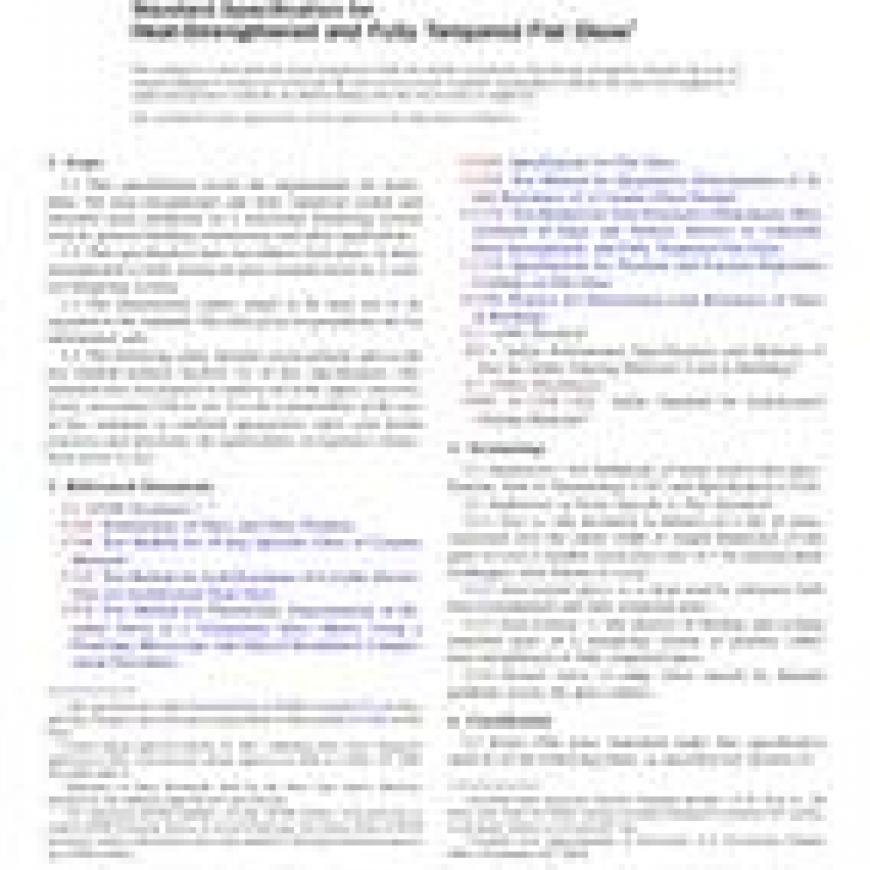 1.1 This specification covers the requirements for monolithic flat heat-strengthened and fully tempered coated and uncoated glass produced on a horizontal tempering system used in general building construction and other applications.
