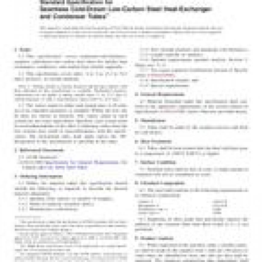 1.1This specification2 covers minimum-wall-thickness, seamless cold-drawn low-carbon steel tubes for tubular heat exchangers, condensers, and similar heat transfer apparatus.