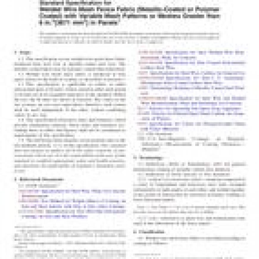 ASTM F2919/F2919M-12 Standard Specification for Welded Wire Mesh Fence Fabric (Metallic-Coated or Polymer Coated) with Variable Mesh Patterns or Meshes Greater than 6 in.2 [3871 mm2] in Panels