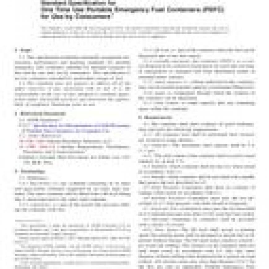 ASTM F2874-12 Standard Specification for One Time Use Portable Emergency Fuel Containers (PEFC) for Use by Consumers