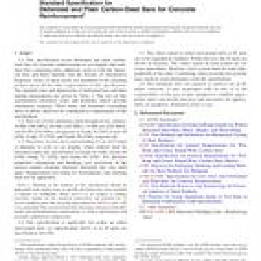 1.1 This specification covers deformed and plain carbon-steel bars for concrete reinforcement in cut lengths and coils. Steel bars containing alloy additions, such as with the American Iron and Steel Institute and the Society of Automotive Engineers series of alloy steels, are permitted if the resulting product meets all the other requirements of this specification. The standard sizes and dimensions of deformed bars and their number designations are given in Table 1. The text of this specification references notes and footnotes which provide explanatory material. These notes and footnotes (excluding those in tables) shall not be considered as requirements of the specification.