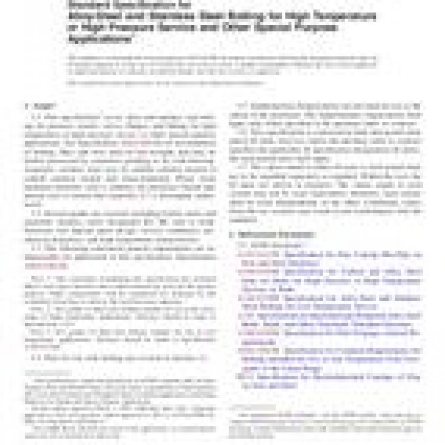 1.1 This specification covers alloy and stainless steel bolting for pressure vessels, valves, flanges, and fittings for high temperature or high pressure service, or other special purpose applications. See Specification A962/A962M for the definition of bolting. Bars and wire shall be hot-wrought and may be further processed by centerless grinding or by cold drawing. Austenitic stainless steel may be carbide solution treated or carbide solution treated and strain-hardened. When strain hardened austenitic steel is ordered, the purchaser should take special care to ensure that Appendix X1 is thoroughly understood.