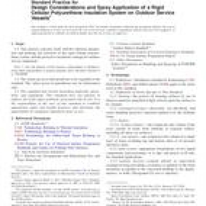 ASTM C945-05(2012) Standard Practice for Design Considerations and Spray Application of a Rigid Cellular Polyurethane Insulation System on Outdoor Service Vessels