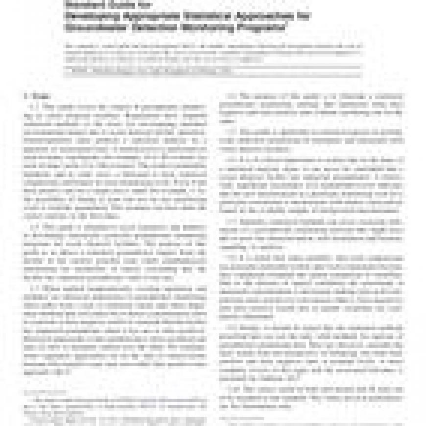 This guide covers the context of groundwater monitoring at waste disposal facilities. Regulations have required statistical methods as the basis for investigating potential environmental impact due to waste disposal facility operation. Owner/operators must perform a statistical analysis on a quarterly or semiannual basis. A statistical test is performed on each of many constituents (for example, 10 to 50 or more) for each of many wells (5 to 100 or more). The result is potentially hundreds, and in some cases, a thousand or more statistical comparisons performed on each monitoring event. Even if the false positive rate for a single test is small (for example, 1%), the possibility of failing at least one test on any monitoring event is virtually guaranteed. This assumes you have done the correct statistic in the first place.This guide is intended to assist regulators and industry in developing statistically powerful groundwater monitoring programs for waste disposal facilities. The purpose of this guide is to detect a potential groundwater impact from the facility at the earliest possible time while simultaneously minimizing the probability of falsely concluding that the facility has impacted groundwater when it has not.