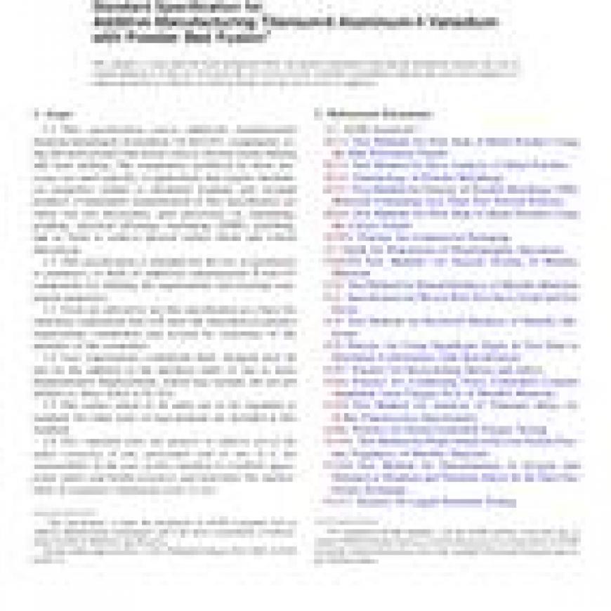 1.2 This specification is intended for the use of purchasers or producers, or both, of additively manufactured Ti-6Al-4V components for defining the requirements and ensuring component properties.