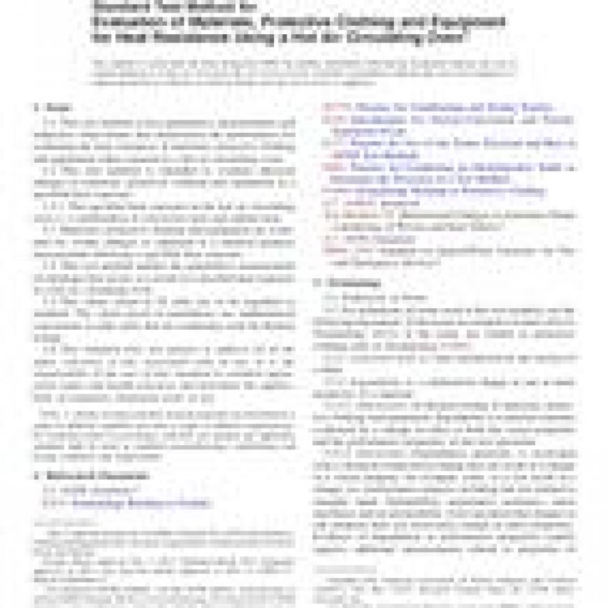 ASTM F2894-12 Standard Test Method for Evaluation of Materials, Protective Clothing and Equipment for Heat Resistance Using a Hot Air Circulating Oven