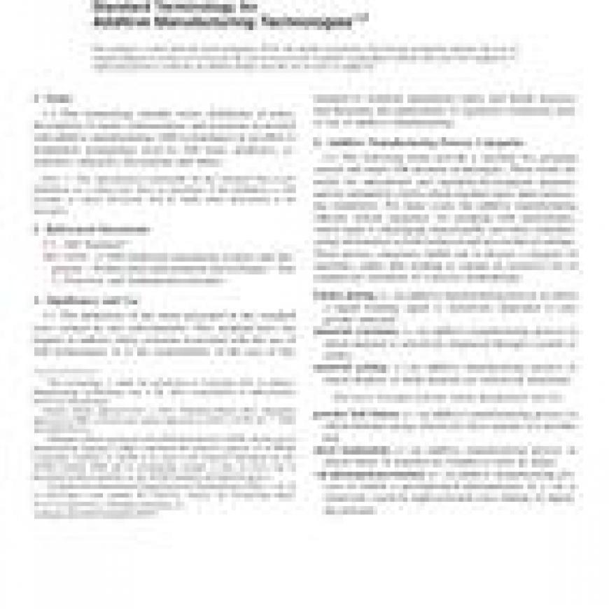 1.1 This terminology includes terms, definitions of terms, descriptions of terms, nomenclature, and acronyms associated with additive-manufacturing (AM) technologies in an effort to standardize terminology used by AM users, producers, researchers, educators, press/media and others.