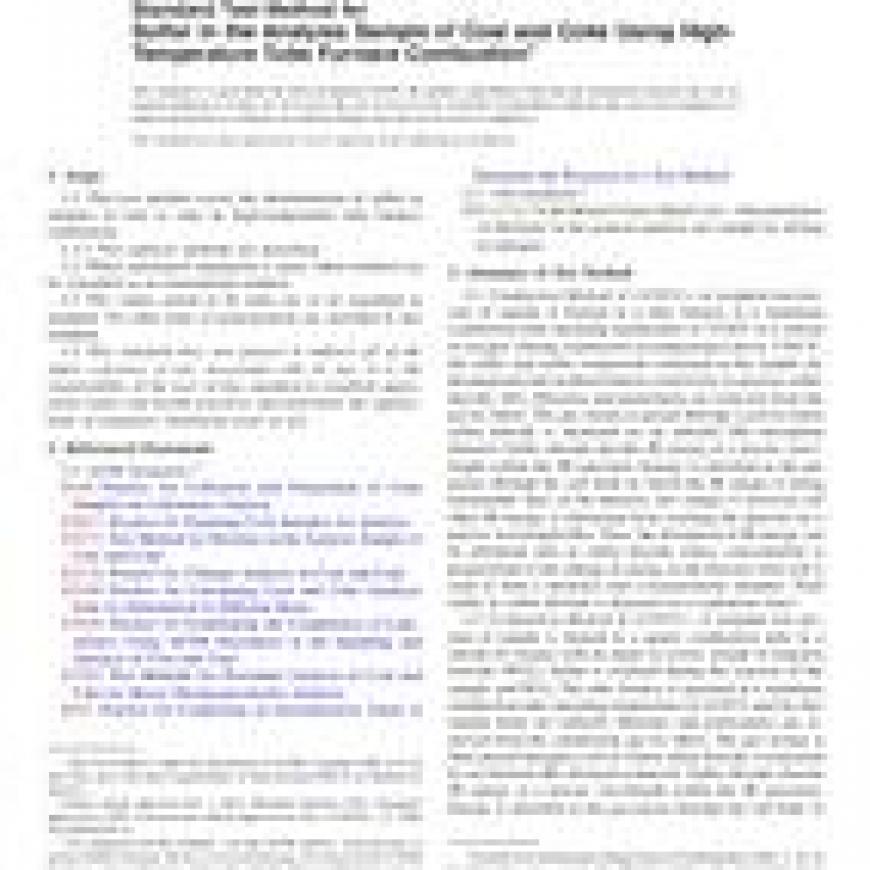 ASTM D4239-12 Standard Test Method for Sulfur in the Analysis Sample of Coal and Coke Using High-Temperature Tube Furnace Combustion