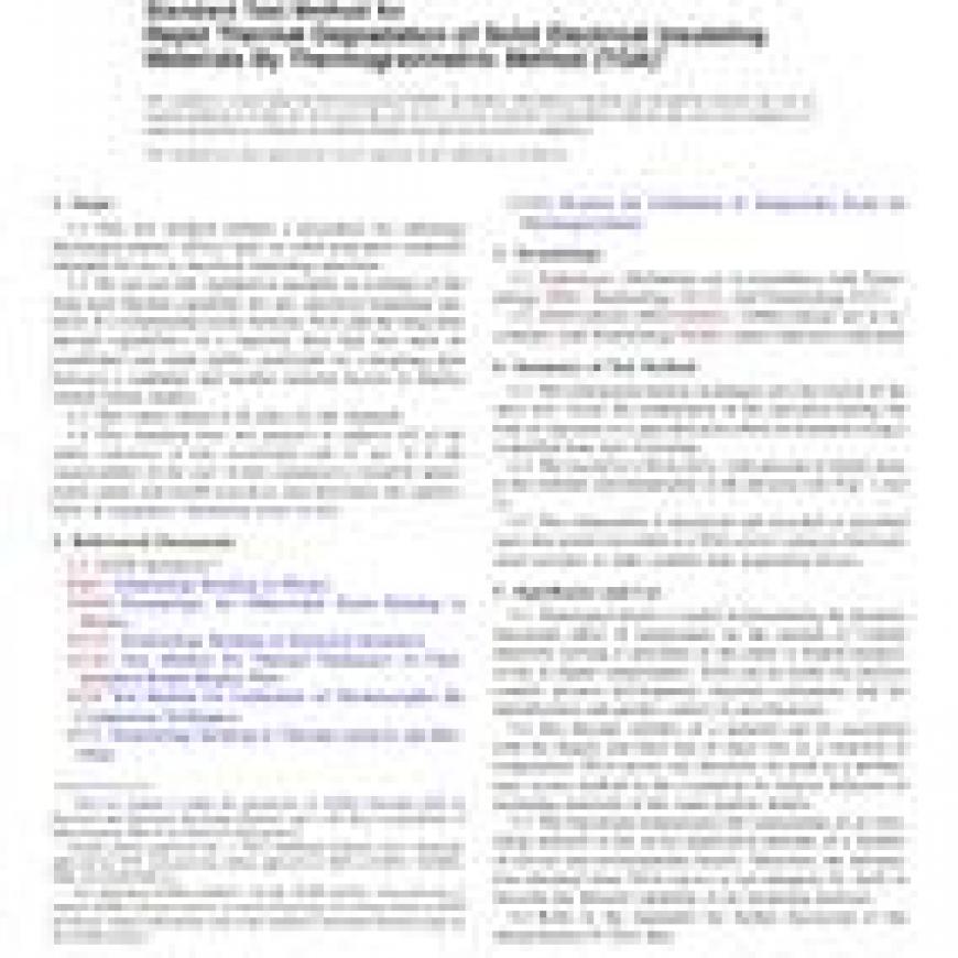 ASTM D3850-12 Standard Test Method for Rapid Thermal Degradation of Solid Electrical Insulating Materials By Thermogravimetric Method (TGA)