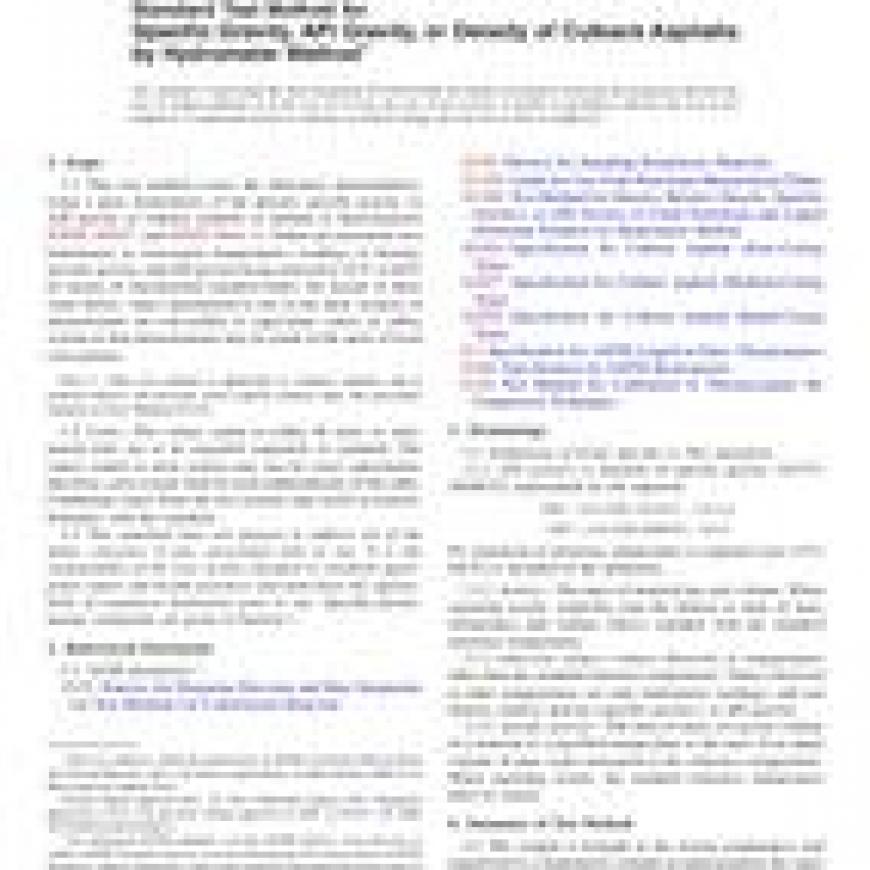 ASTM D3142/D3142M-11 Standard Test Method for Specific Gravity, API Gravity, or Density of Cutback Asphalts by Hydrometer Method