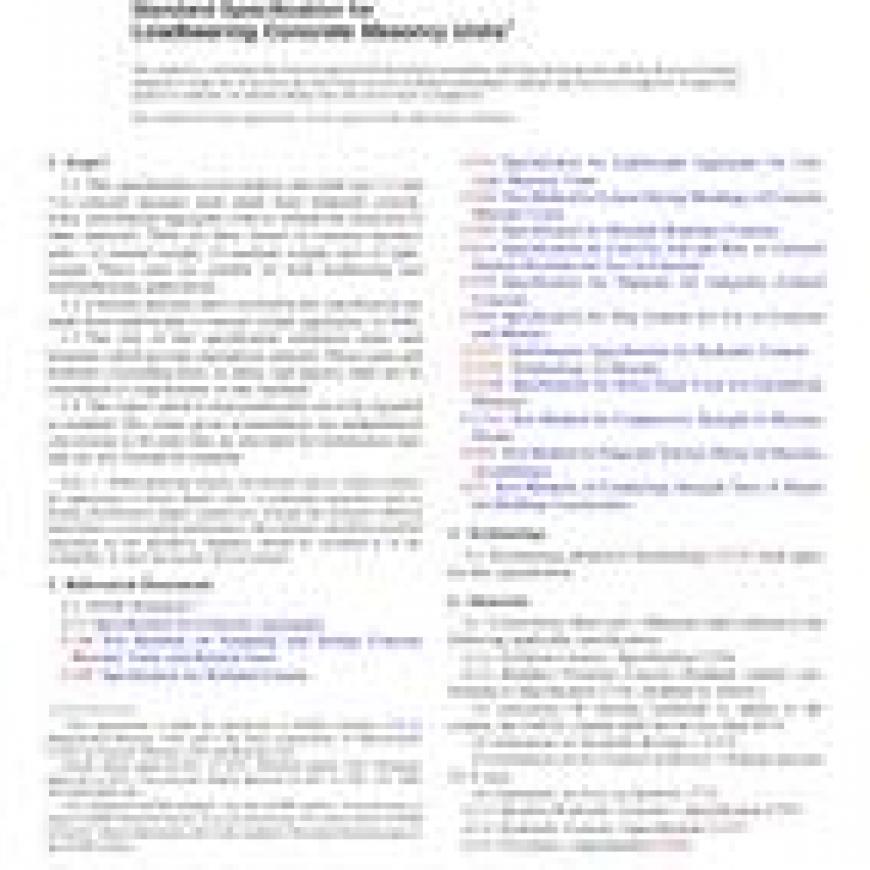 1.1 This specification covers hollow and solid (see 5.3 and 5.4) concrete masonry units made from hydraulic cement, water, and mineral aggregates with or without the inclusion of other materials. There are three classes of concrete masonry units: (1) normal weight, (2) medium weight, and (3) lightweight. These units are suitable for both loadbearing and nonloadbearing applications.