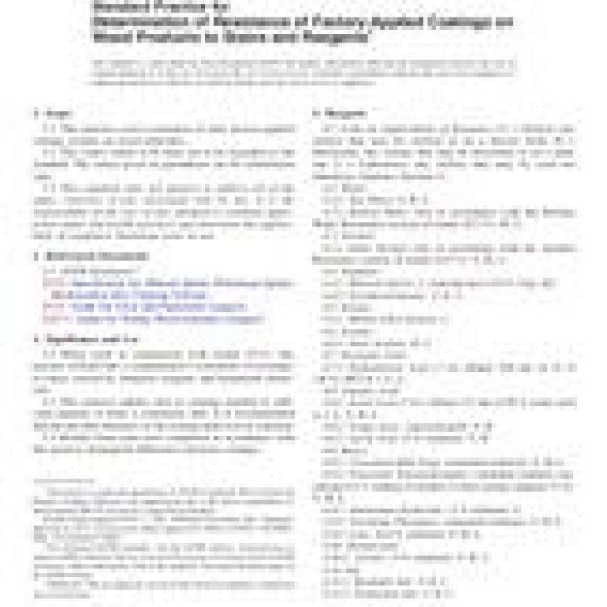 ASTM D3023-98(2011) Standard Practice for Determination of Resistance of Factory-Applied Coatings on Wood Products to Stains and Reagents