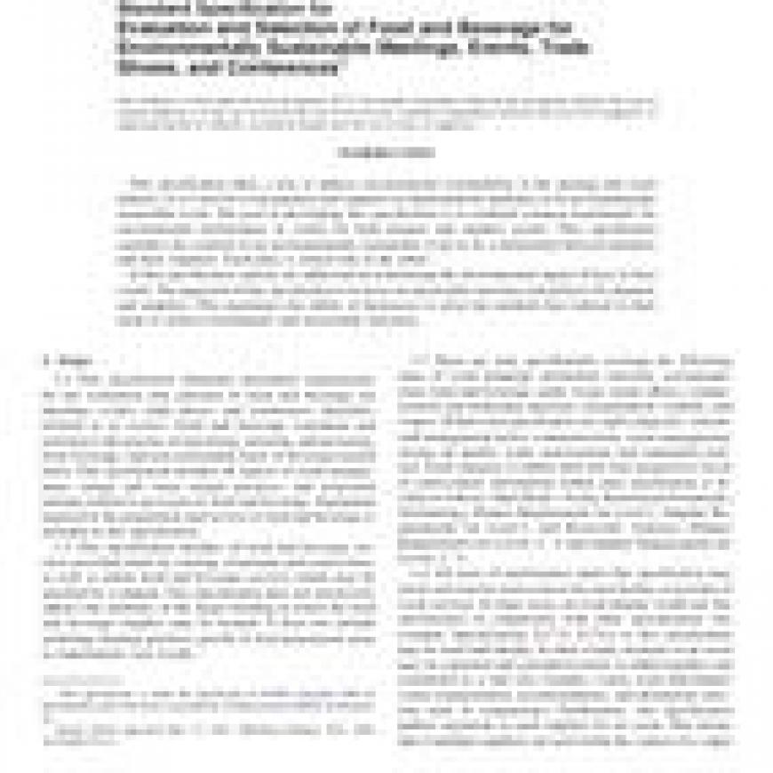 Standard Specification for Evaluation and Selection of Food and Beverage for Environmentally Sustainable Meetings, Events, Trade Shows, and Conferencesstandard by ASTM International, 09/15/2011