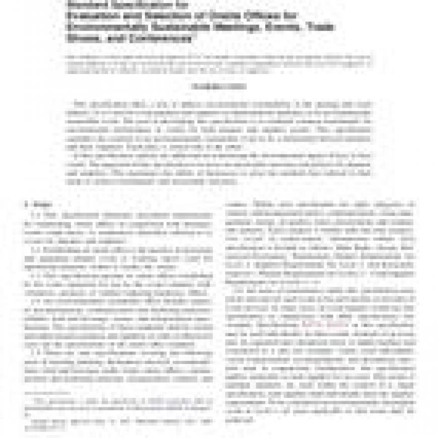 Standard Specification for Evaluation and Selection of Onsite Offices for Environmentally Sustainable Meetings, Events, Trade Shows, and Conferencesstandard by ASTM International, 09/15/2011