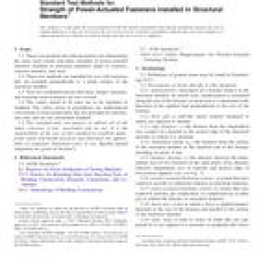 1.1 These test methods describe procedures for determining the static axial tensile and shear strengths of power-actuated fasteners installed in structural members made of concrete, concrete masonry, and steel.