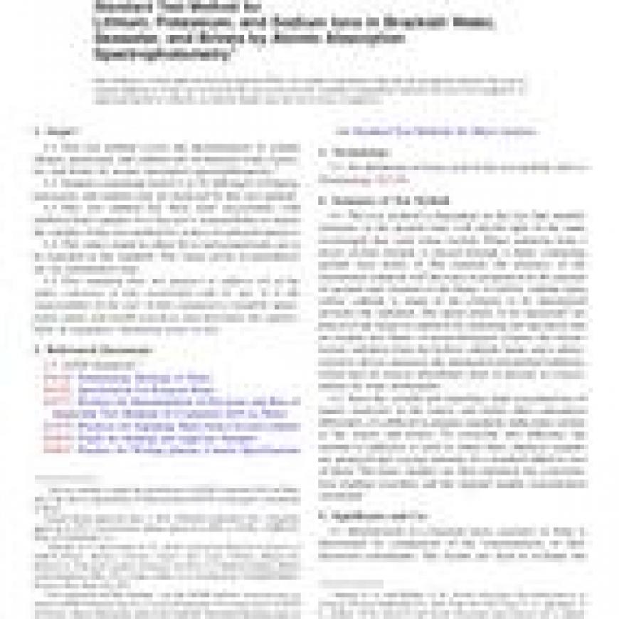 Standard Test Method for Lithium, Potassium, and Sodium Ions in Brackish Water, Seawater, and Brines by Atomic Absorption Spectrophotometrystandard by ASTM International, 09/01/2011