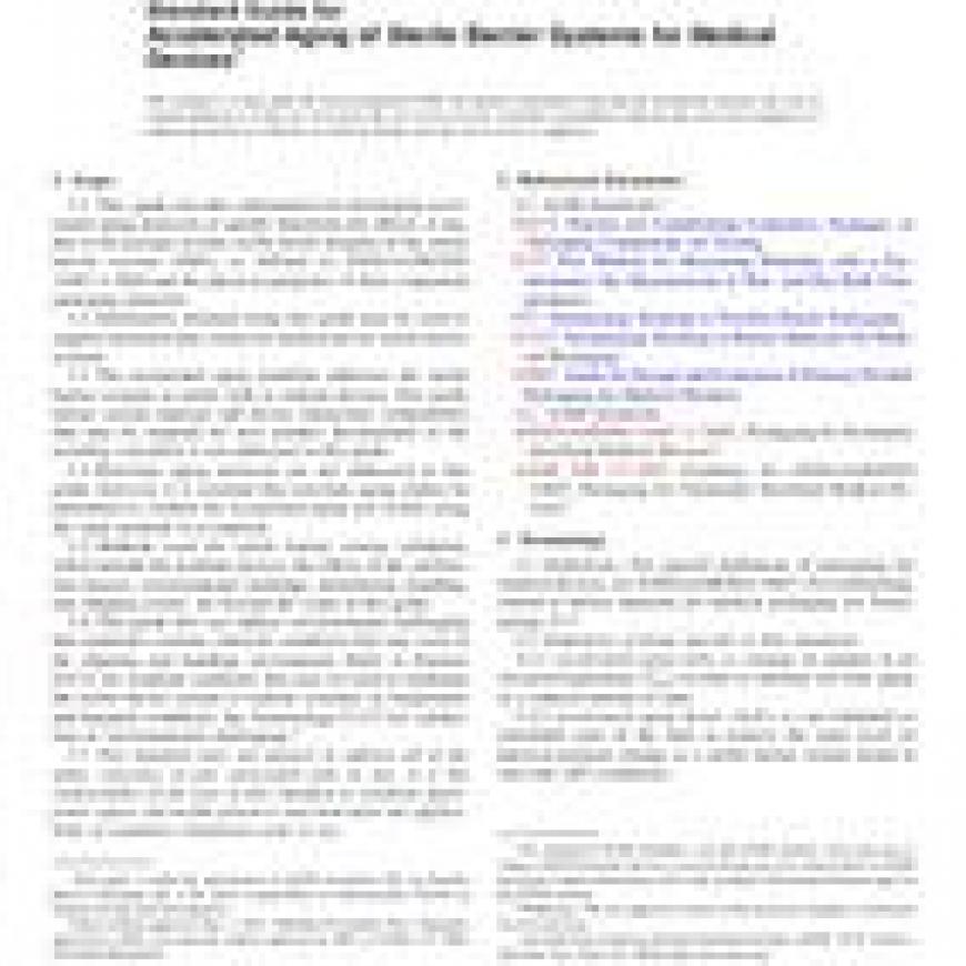 1.1 This guide provides information for developing accelerated aging protocols to rapidly determine the effects, if any, due to the passage of time on the sterile integrity of the sterile barrier system (SBS), as defined in ANSI/AAMI/ISO 11607-1:2006 and the physical properties of their component packaging materials.