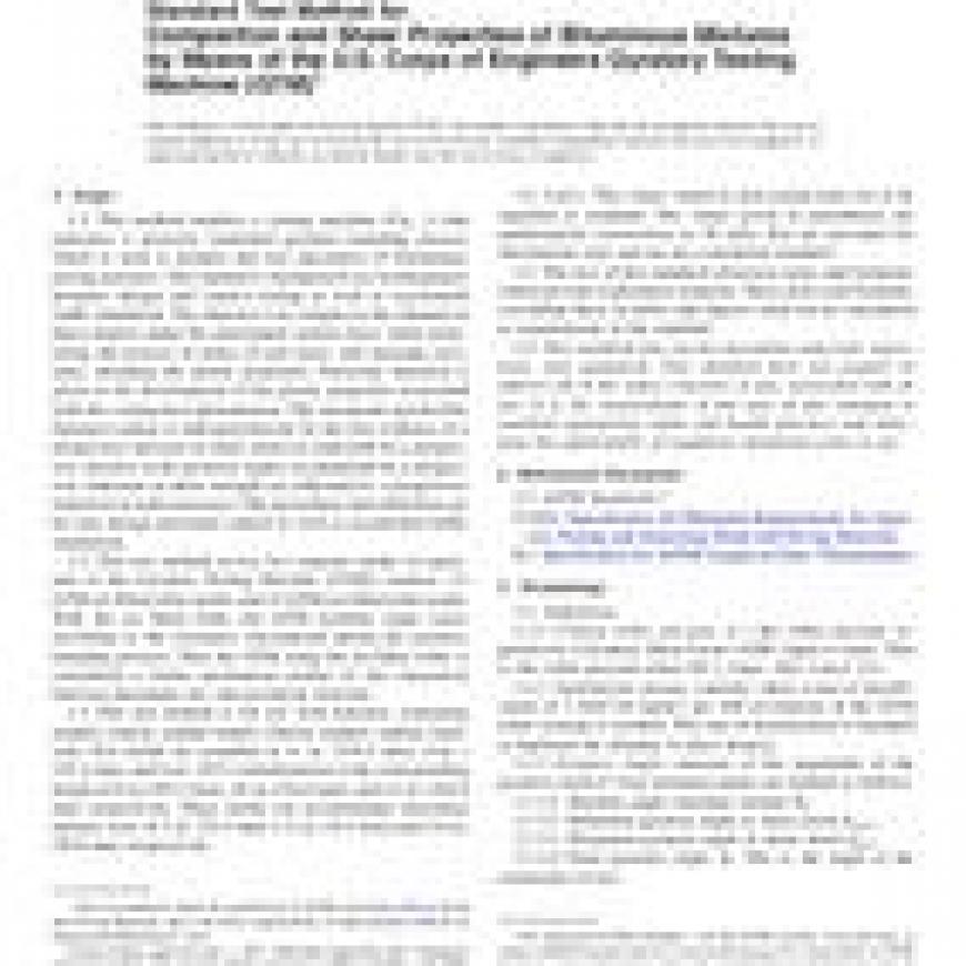 ASTM D3387-11 Standard Test Method for Compaction and Shear Properties of Bituminous Mixtures by Means of the U.S. Corps of Engineers Gyratory Testing Machine (GTM) (Withdrawn 2020)