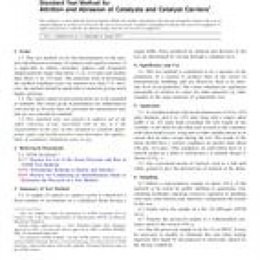 ASTM D4058-96(2011)e1 Standard Test Method for Attrition and Abrasion of Catalysts and Catalyst Carriers