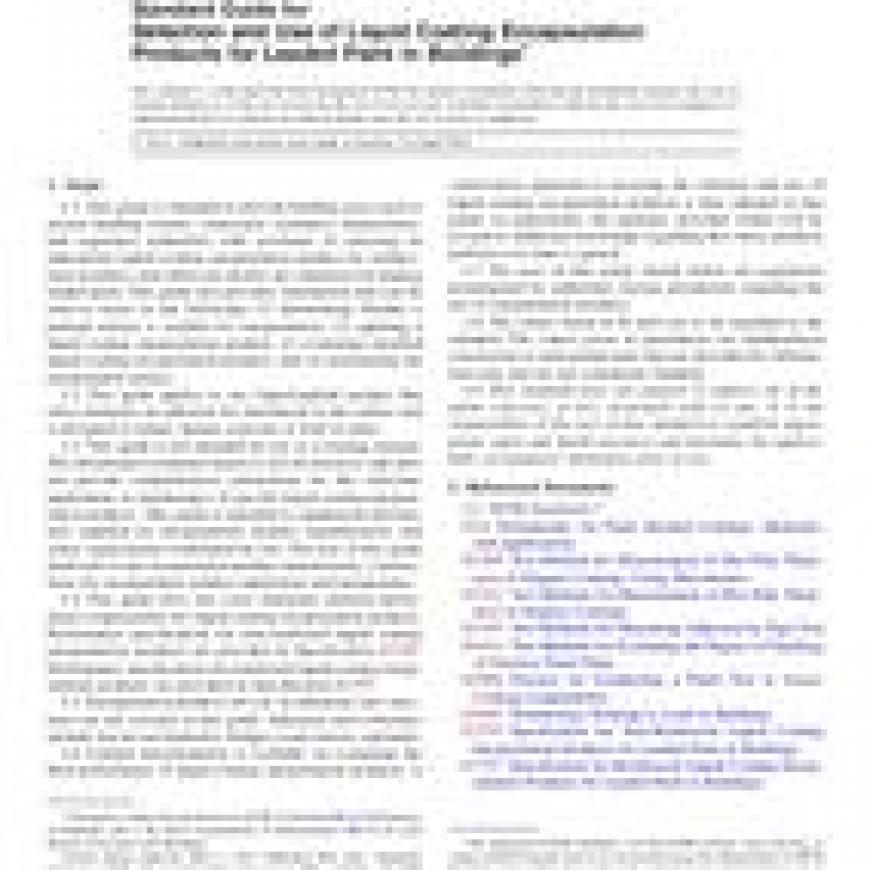 1.1 This guide is intended to provide building users such as private building owners, contractors, architects, homeowners, and regulatory authorities with assistance in selecting an appropriate liquid coating encapsulation product for architectural residence and child-care facility use situations for abating leaded paint. This guide also provides information that can be used to assist in the following: (1) determining whether a painted surface is suitable for encapsulation, (2) applying a liquid coating encapsulation product, (3) evaluating installed liquid coating encapsulation products, and (4) maintaining the encapsulated surface.