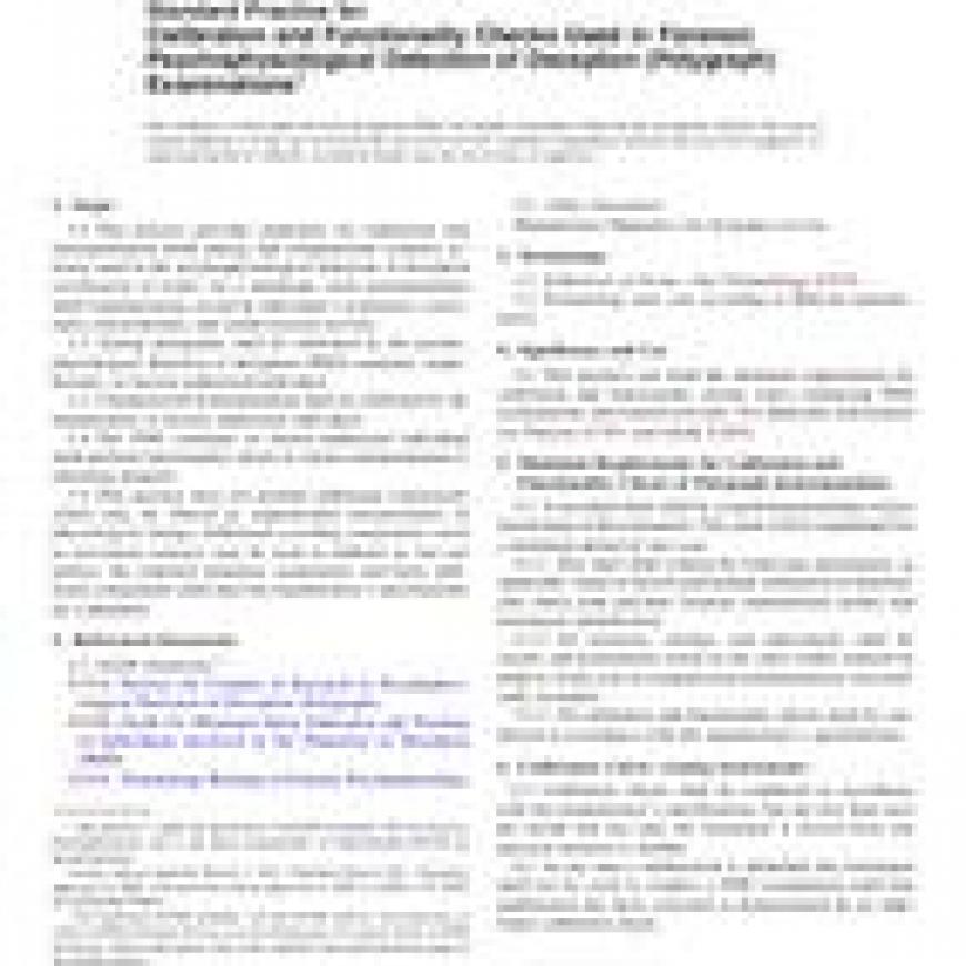 ASTM E2063-05(2011) Standard Practice for Calibration and Functionality Checks Used in Forensic Psychophysiological Detection of Deception (Polygraph) Examinations