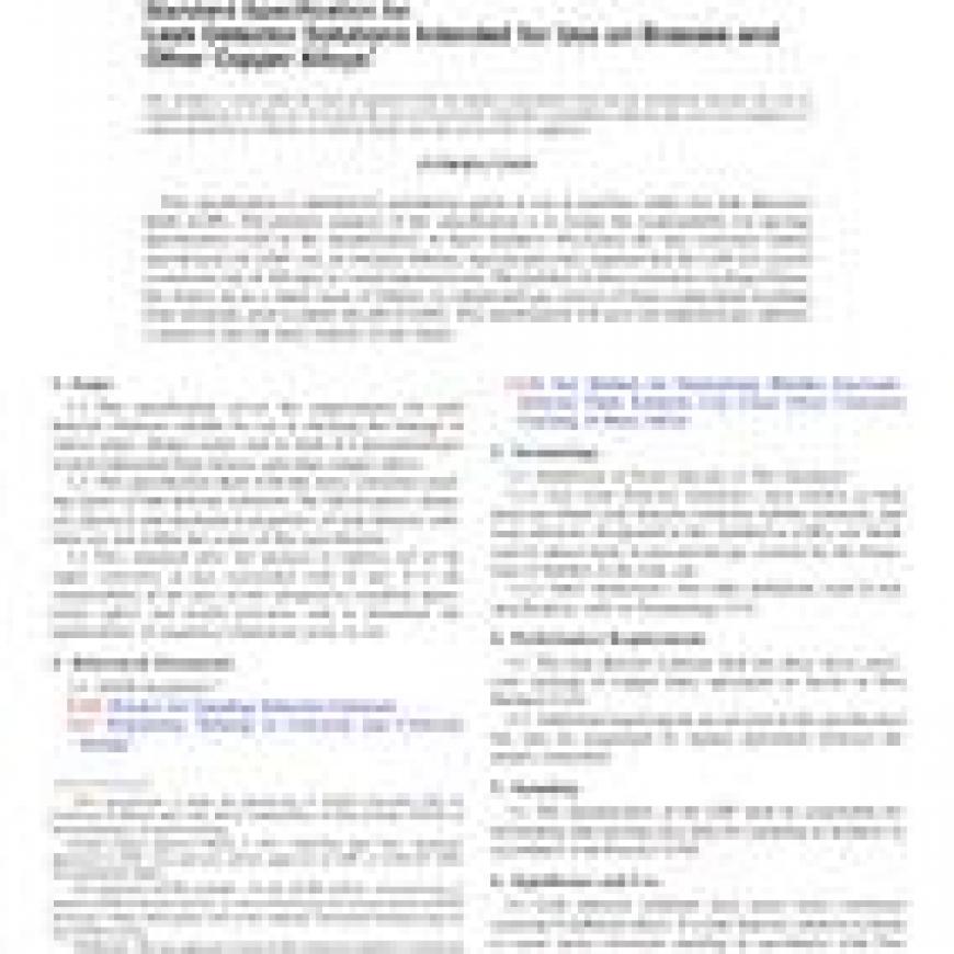 1.1 This specification covers the requirements for leak detector solutions suitable for use in checking the leakage of valves, pipes, fittings, joints, and so forth of a pressurized gas system fabricated from brasses and other copper alloys.