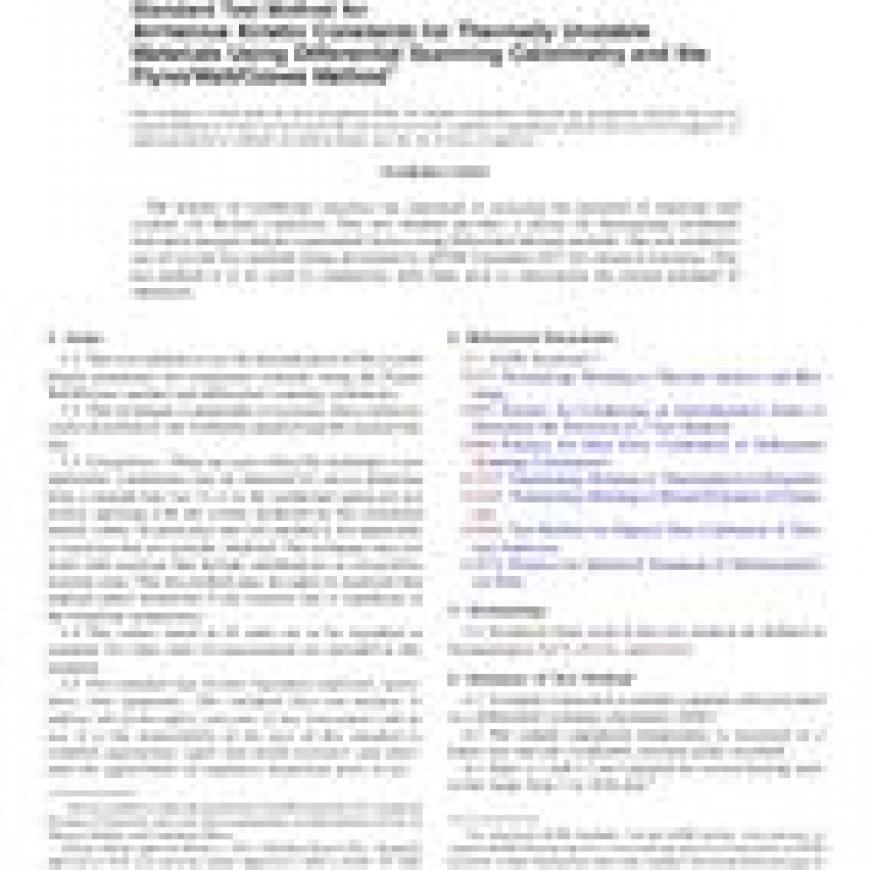 ASTM E698-11 Standard Test Method for Arrhenius Kinetic Constants for Thermally Unstable Materials Using Differential Scanning Calorimetry and the Flynn/Wall/Ozawa Method