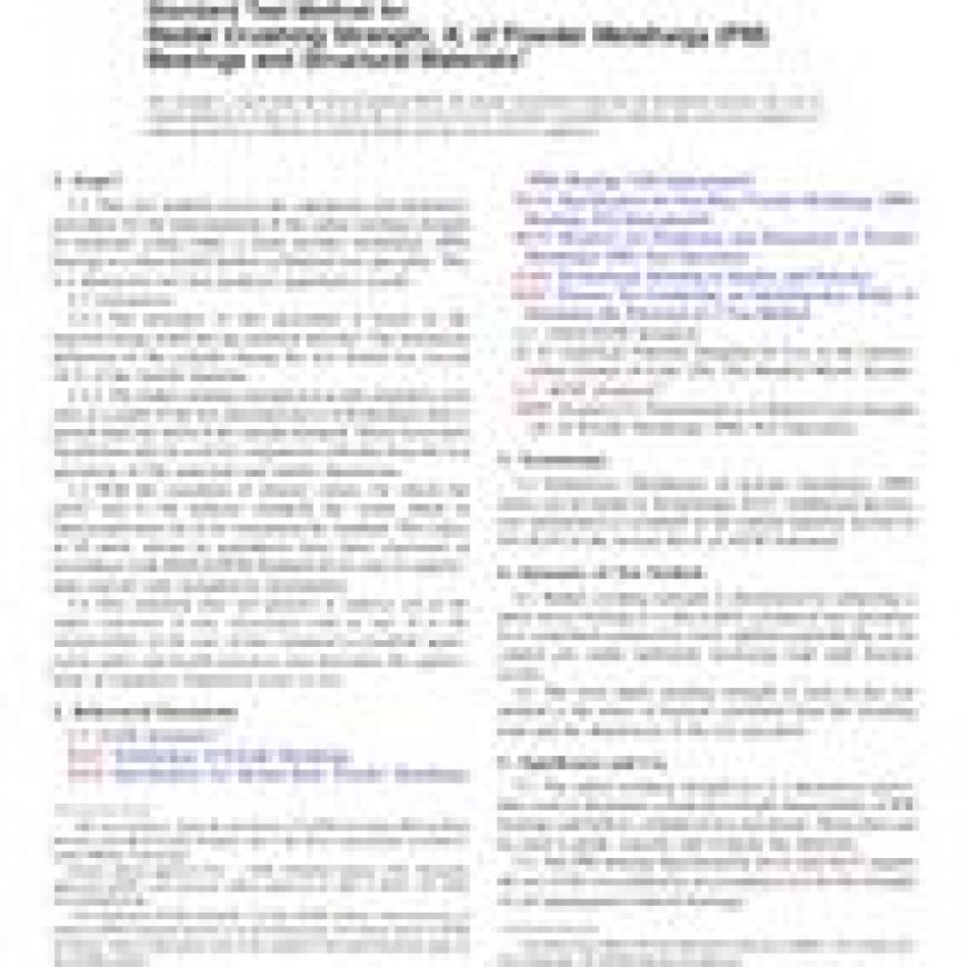 ASTM B939-09 Standard Test Method for Radial Crushing Strength, K, of Powder Metallurgy (P/M) Bearings and Structural Materials