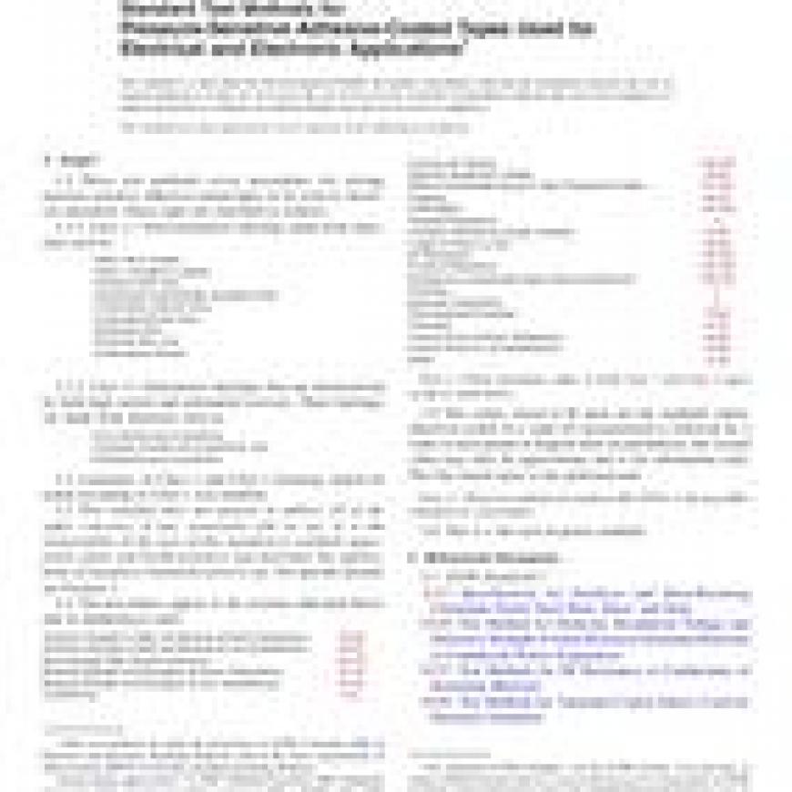 ASTM D1000-09 Standard Test Methods for Pressure-Sensitive Adhesive-Coated Tapes Used for Electrical and Electronic Applications