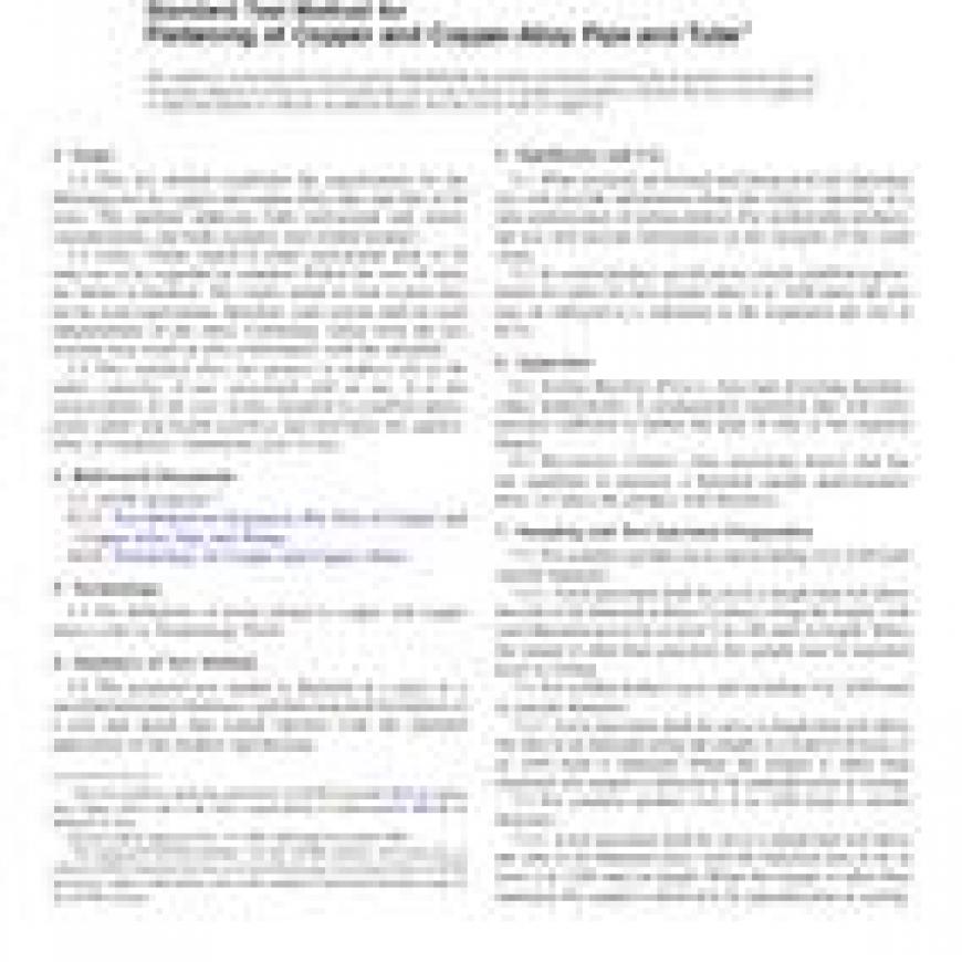 1.1 This test method establishes the requirements for the flattening test for copper and copper alloy pipe and tube of all sizes. The method addresses both inch-pound and metric considerations, and both seamless and welded product.