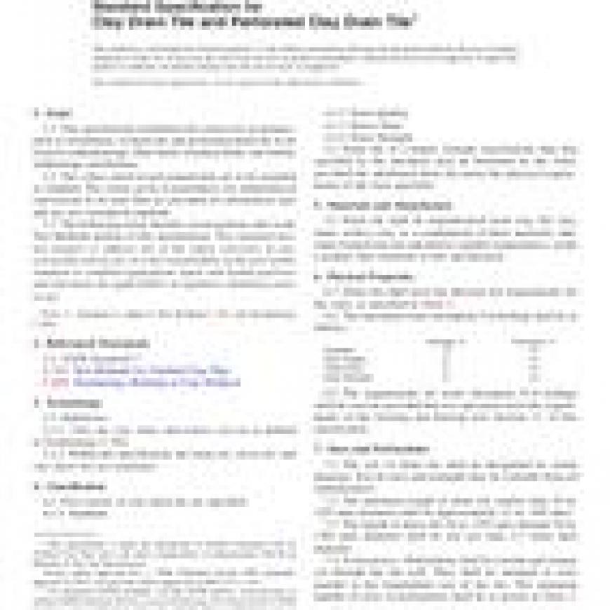 1.1 This specification establishes the criteria for acceptance, prior to installation, of drain tile and perforated drain tile to be used for underdrainage, filter fields, leaching fields, and similar subdrainage installations.