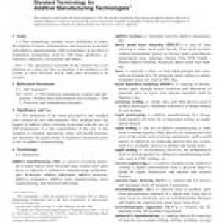 1.1 This terminology includes terms, definitions of terms, descriptions of terms, nomenclature, and acronyms associated with additive-manufacturing (AM) technologies in an effort to standardize terminology used by AM users, producers, researchers, educators, press/media and others.