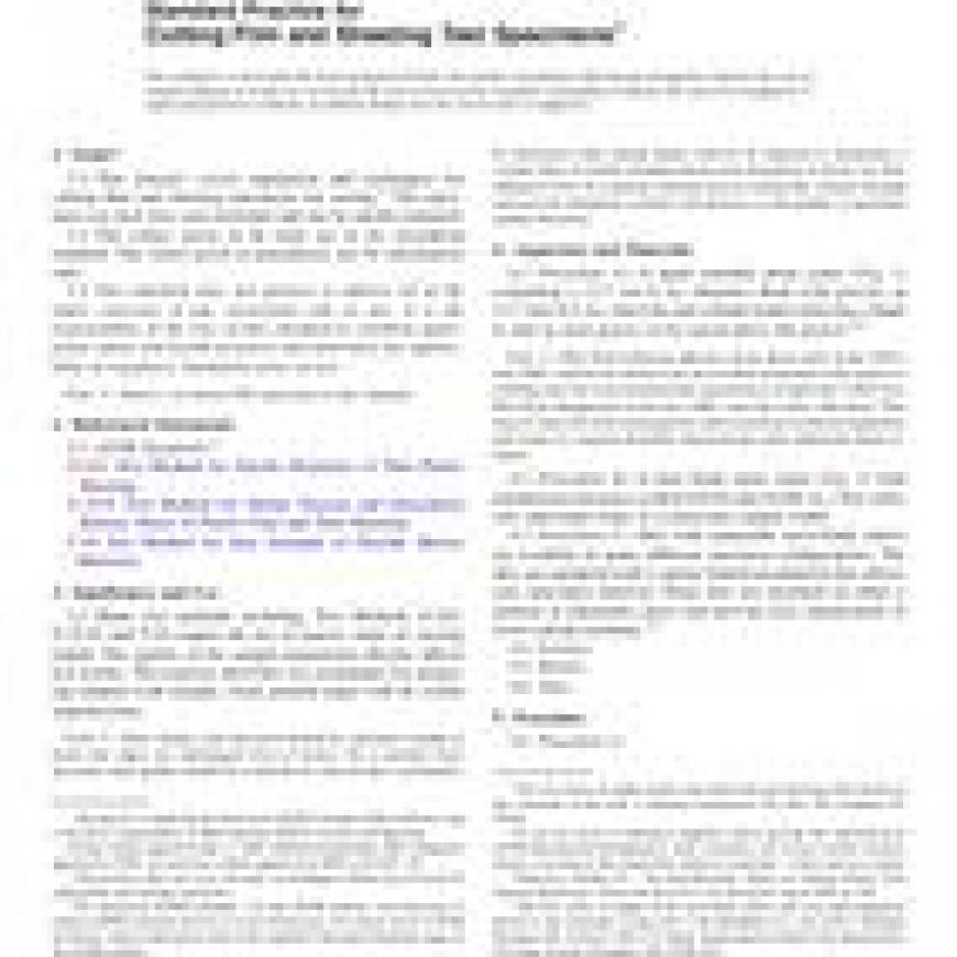 1.1 This practice covers equipment and techniques for cutting film and sheeting specimens for testing. The specimens are nick-free, non-stretched and can be rapidly prepared.