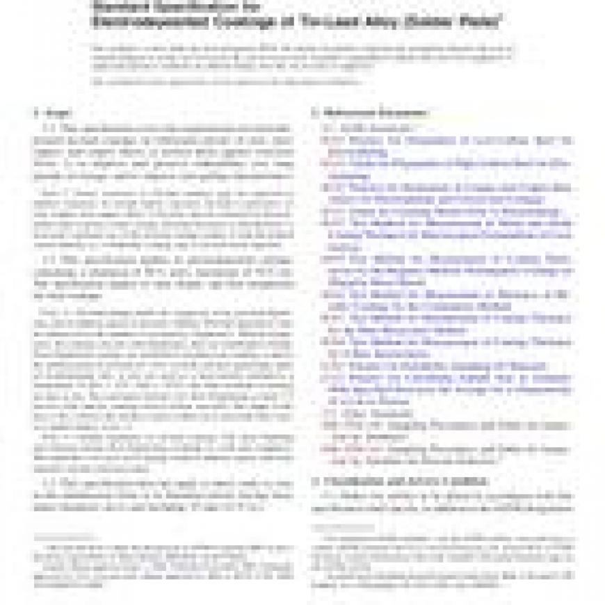 1.1 This specification covers the requirements for electrodeposited tin-lead coatings on fabricated articles of iron, steel, copper, and copper alloys, to protect them against corrosion (Note 1), to improve and preserve solderability over long periods of storage, and to improve anti-galling characteristics.