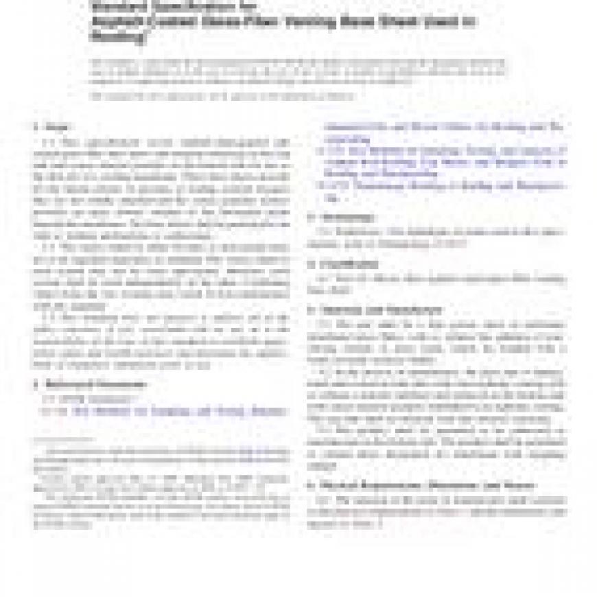 ASTM D4897/D4897M-01(2009) Standard Specification for Asphalt-Coated Glass-Fiber Venting Base Sheet Used in Roofing