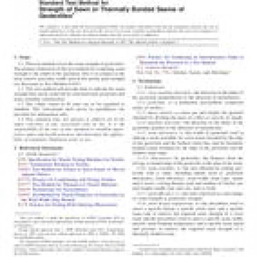 1.1 This test method covers the seam strength of geotextiles. The primary distinction of this test method for evaluating seam strength is the width of the specimen. This is in contrast to the more narrow specimen width used in the tensile grab strength test discussed in Test Method D1683.