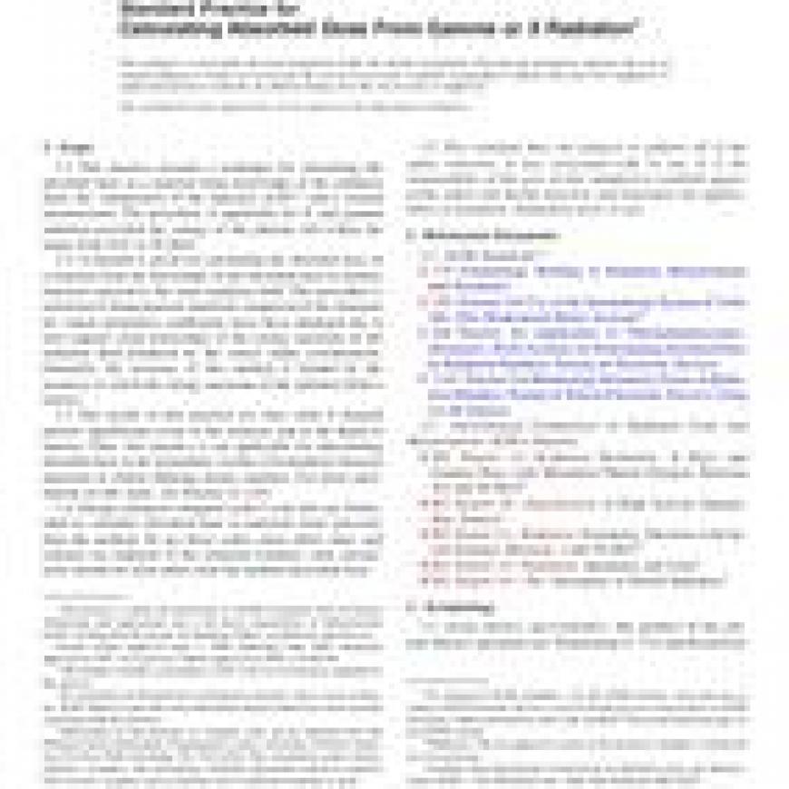 1.1 This practice presents a technique for calculating the absorbed dose in a material from knowledge of the radiation field, the composition of the material, (1-5) , and a related measurement. The procedure is applicable for X and gamma radiation provided the energy of the photons fall within the range from 0.01 to 20 MeV.