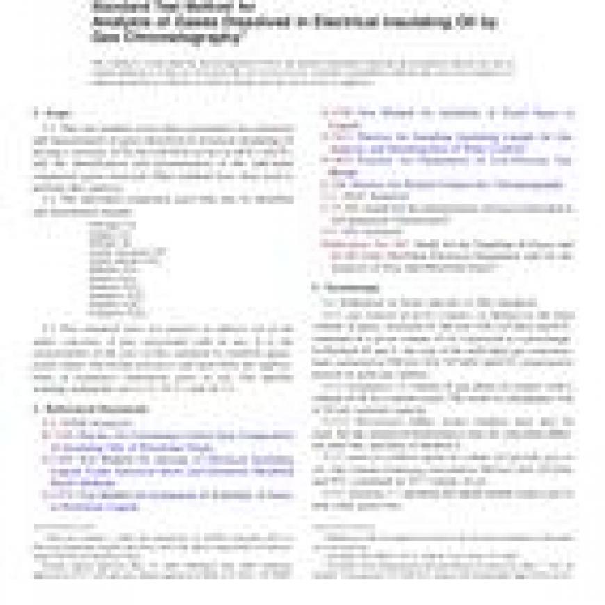 ASTM D3612-02(2009) Standard Test Method for Analysis of Gases Dissolved in Electrical Insulating Oil by Gas Chromatography